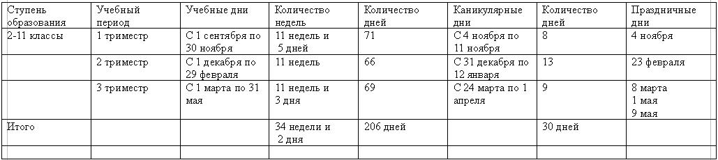 2. Продолжительность учебного года на первой ступени не менее 34 недель, на второй и третьей ступенях